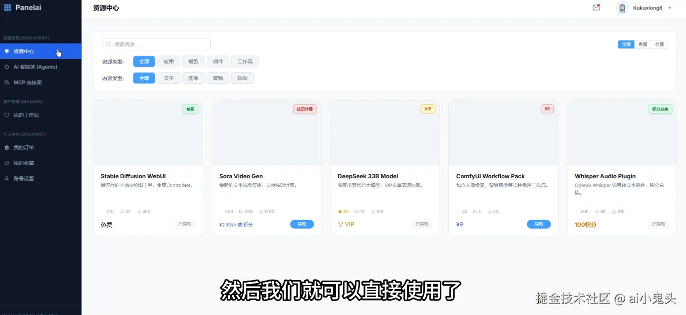 待审核项目和市场资源将不再独立存在,直接融合进用户控制台,实现“一键展示、即用即走”。MCP等AI扩展不再外挂,而是以对话窗口或侧边栏形式呈现;资源市场逻辑也被精简,用户进入控制台即可直接使用。值得一提的是,AIStarter的AI助理网页端将被完整迁移到PanelAI控制台,形成桌面+服务器的无缝闭环。