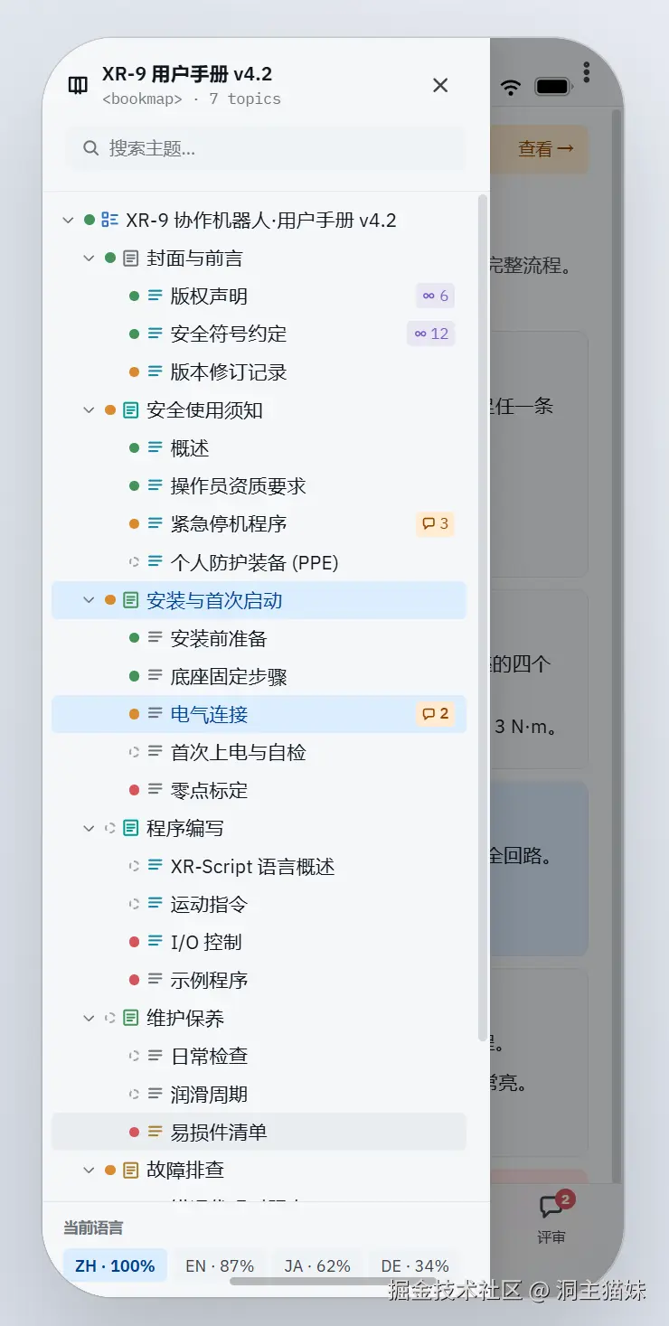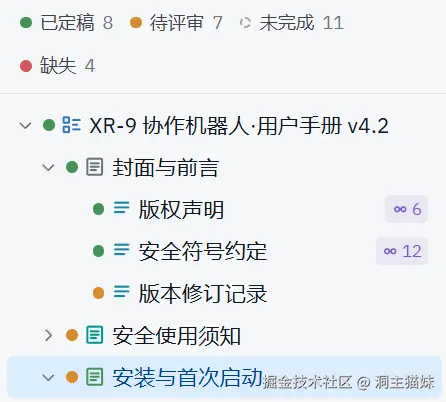 - 文档状态可视化(已定稿/待评审/未完成/缺失)