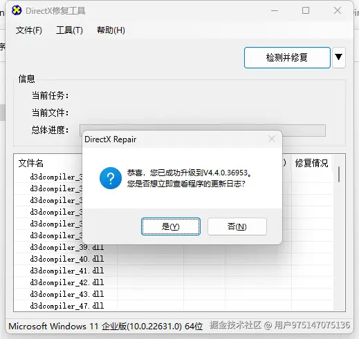 - 打开 DirectX 修复工具,点击右侧「检测并修复」按钮。