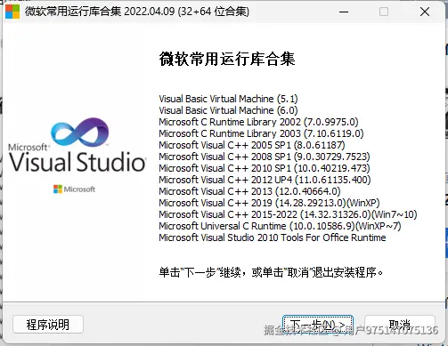 2、很多常用软件都是采用 Microsoft Visual Studio 编写的,所以这类软件的运行需要依赖微软Visual C++运行库。