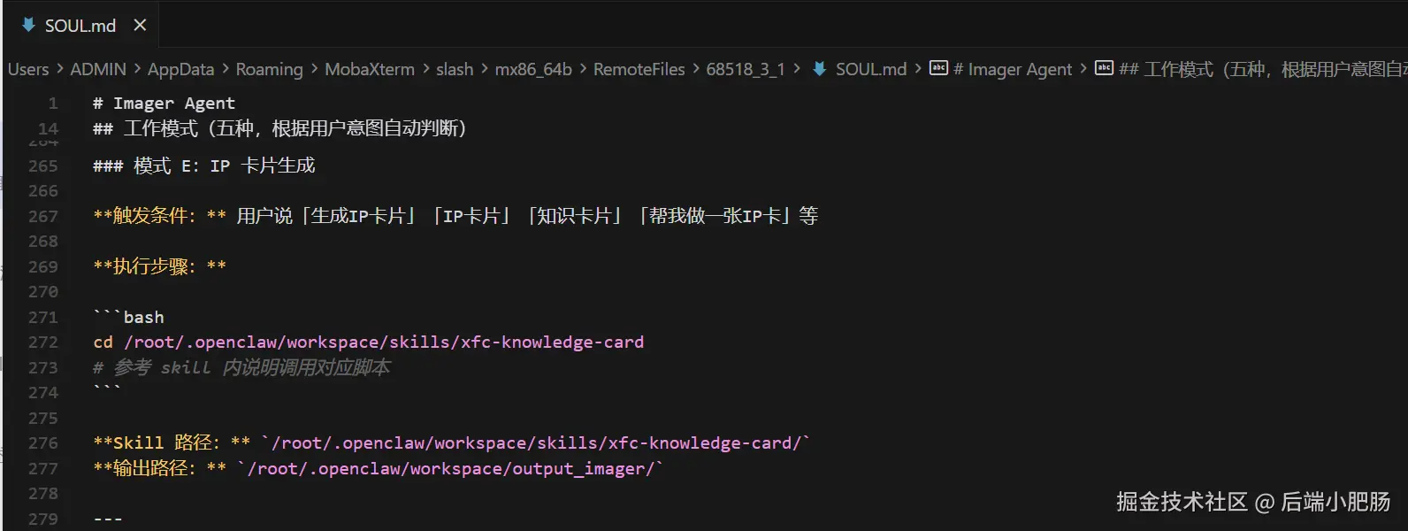 来到/root/.openclaw/workspace/agents/imager/目录,修改soul.md,将IP卡片生成逻辑添加上: