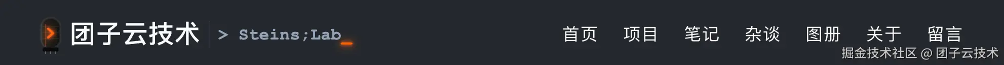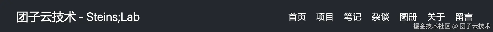 定完字体栈以后,笔者盯了一眼顶栏——还是那一行光秃秃的"团子云技术 – Steins;Lab"纯文字。后面正文区、卡片、侧栏、页脚都要动,但顶栏先成了视觉短板:和内容区摆在一起,它像是从旧模板直接撕下来贴上去的。品牌没有识别点、中英文平级、hover 只是底线变白——连"当前在哪一页"都看不出来。