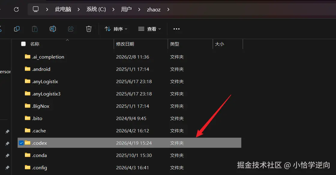 接着,在 C盘 的用户目录下找到 .codex 文件夹: