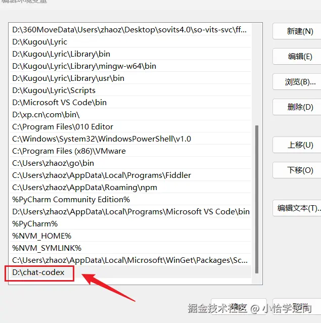 此时我们需要复制 D:\chat-codex 路径,在系统窗口设置 环境变量 :