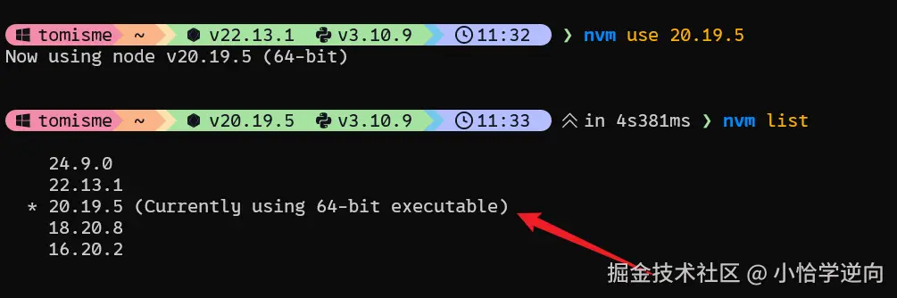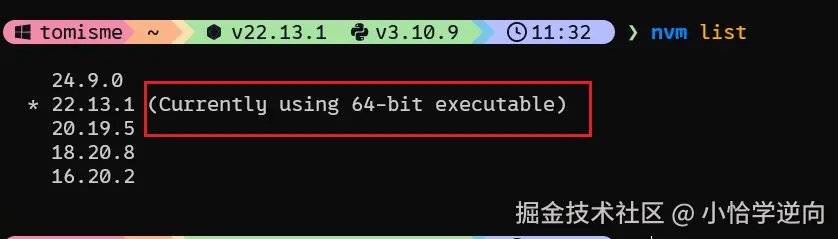 node的情况),如果系统中有多个node环境的,输入命令查看当前使用的node版本:nvm list: