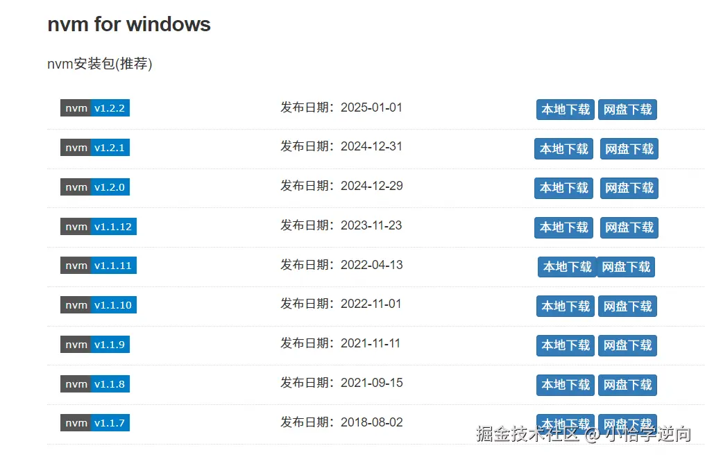 - 下载地址:nvm.uihtm.com/doc/downloa…,下载合适的版本