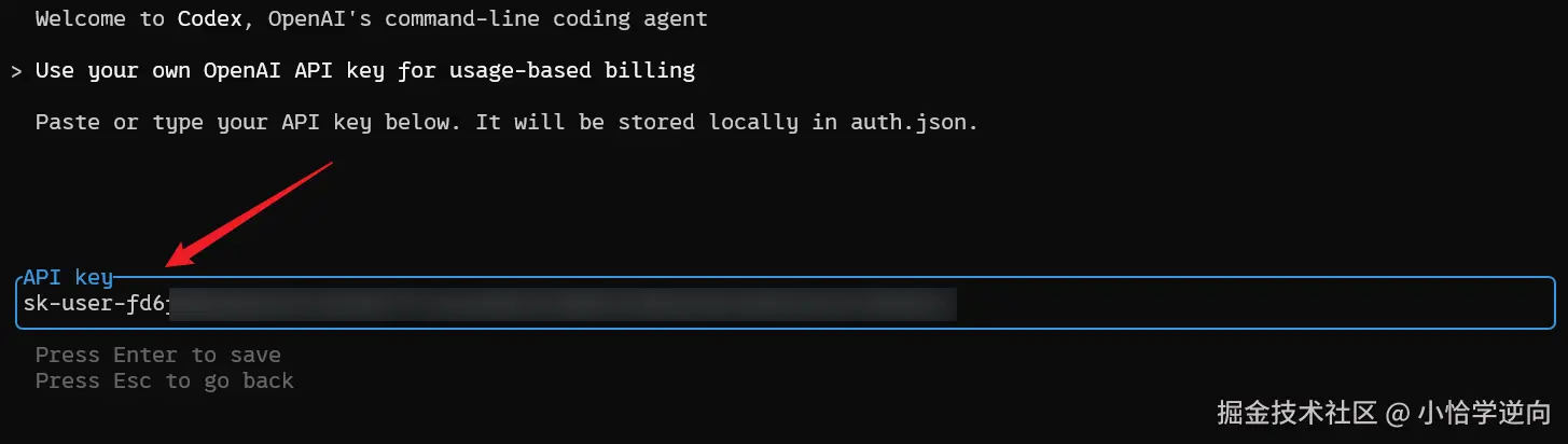 复制 API-KEY 之后,回到之前的 终端 ,选择第三个选项,接着输入复制的密钥: