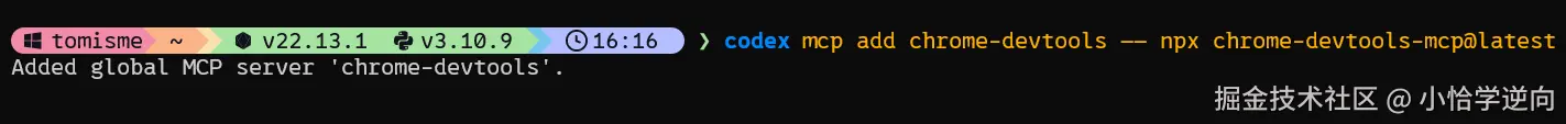 codex mcp add chrome-devtools -- npx chrome-devtools-mcp@latest