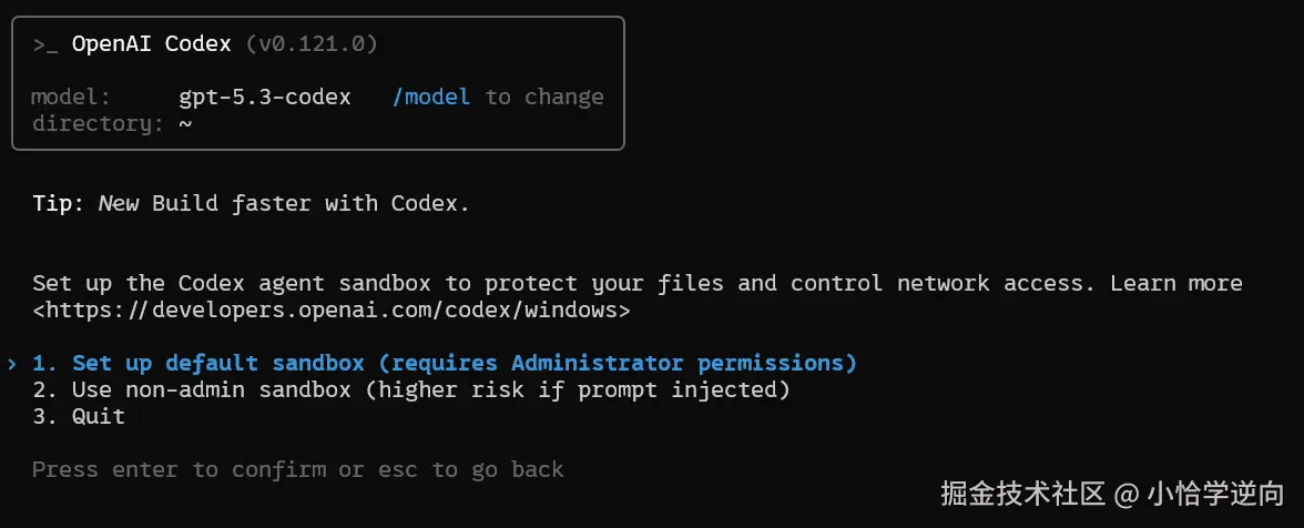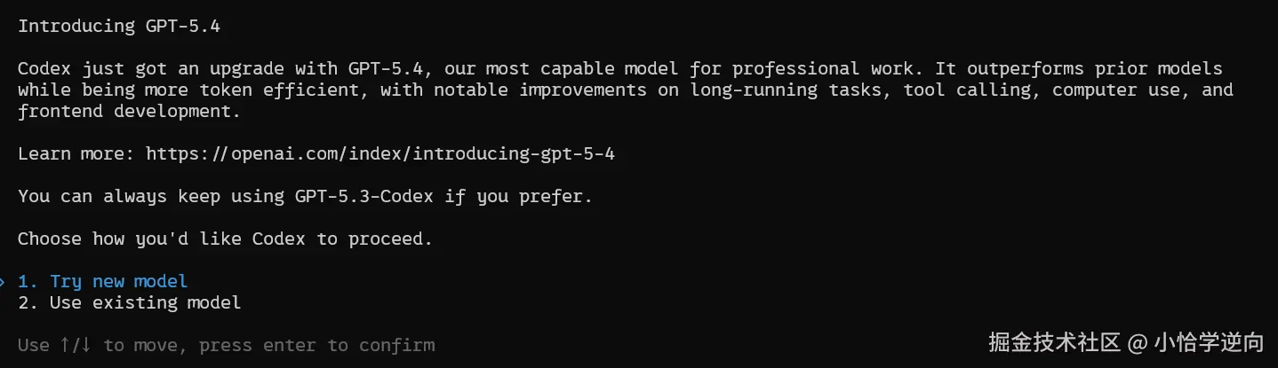 选择 最新模型 还是继续使用 GPT-5.3-Codex ,一般逆向选择的是 codex ,所以我这里选择第二个选项,当然后续也可以切换模型,这里不必太过在意: