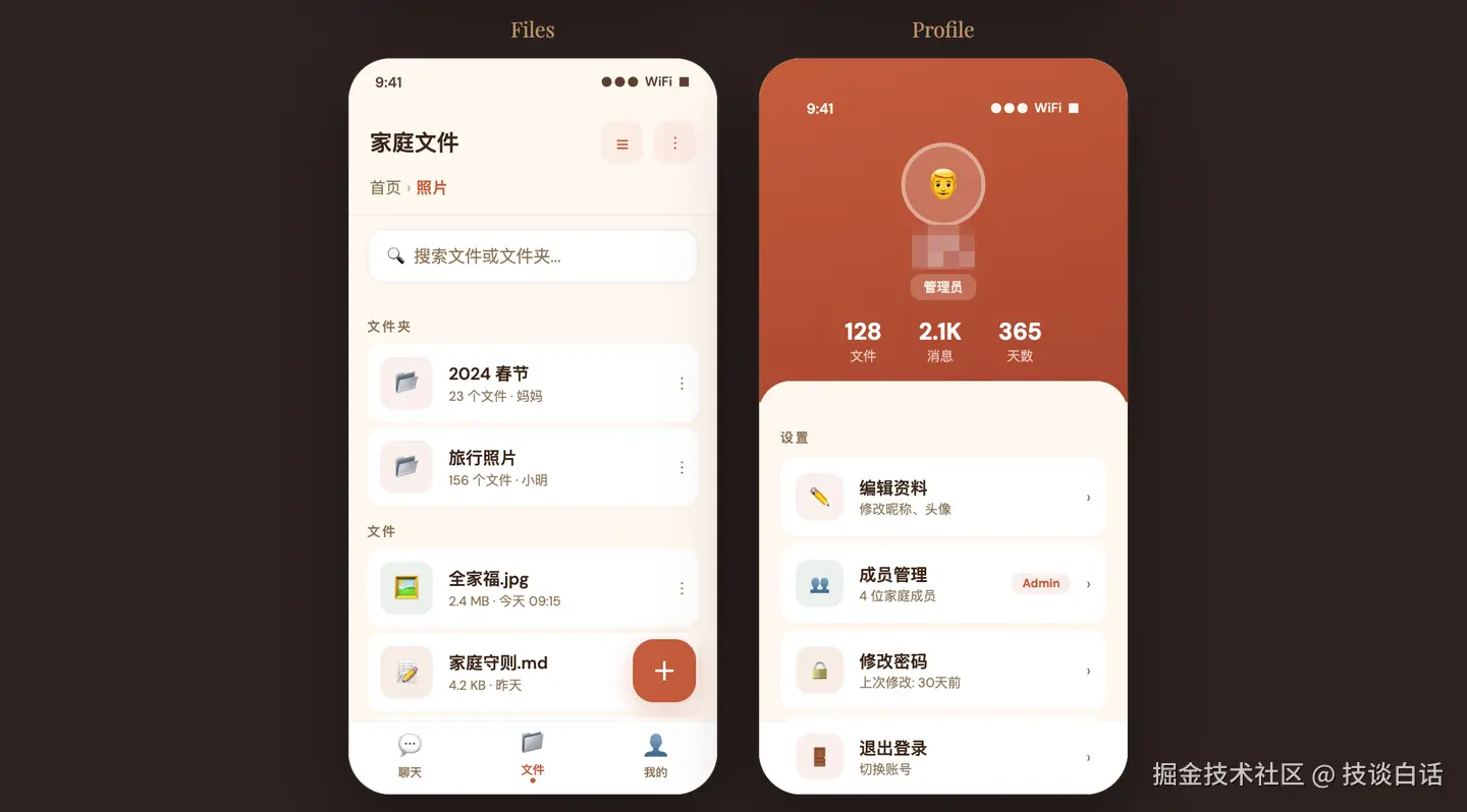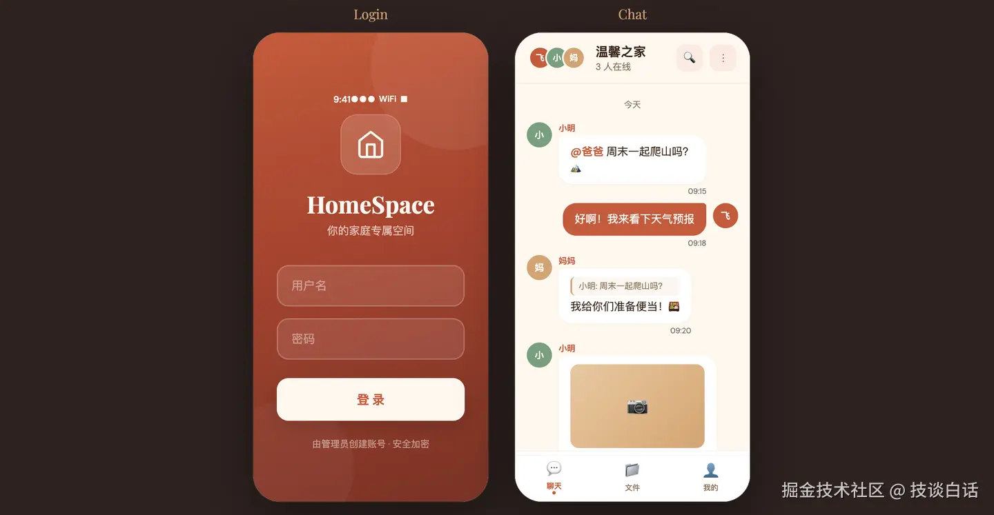 不是一个 Demo ,不只是一个聊天页面,是一整套面向家庭内部使用的移动端应用:可以聊天、同步消息、沉淀待办、存储关键文件,还带一点 AI 能力。
