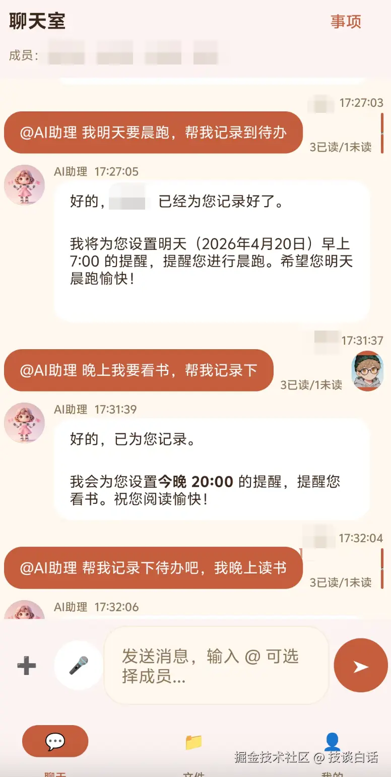 2.有待办事项沉淀,不只是"聊完就没了"