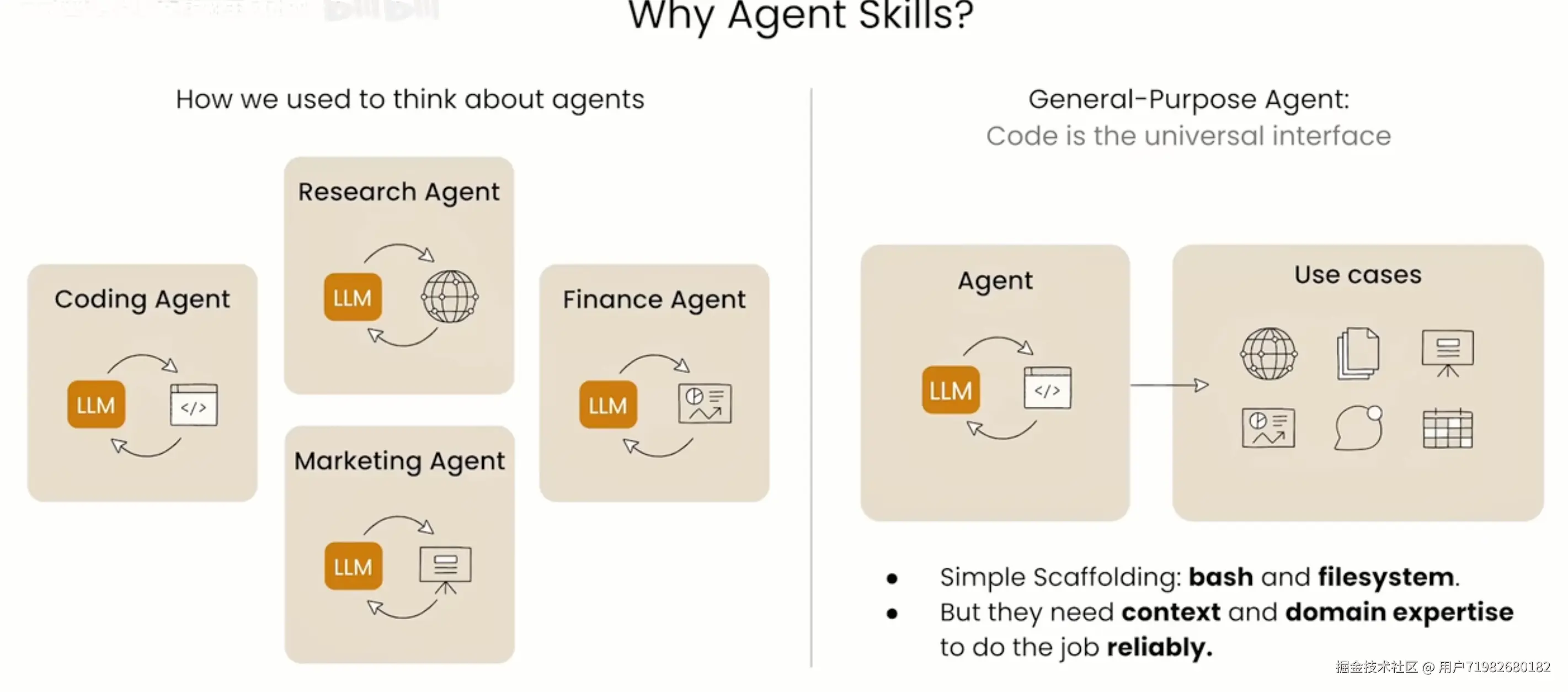 2、Skill 是一个专业的技能,带有了领域经验+通用的动手能力,一般是一个单一职责的。