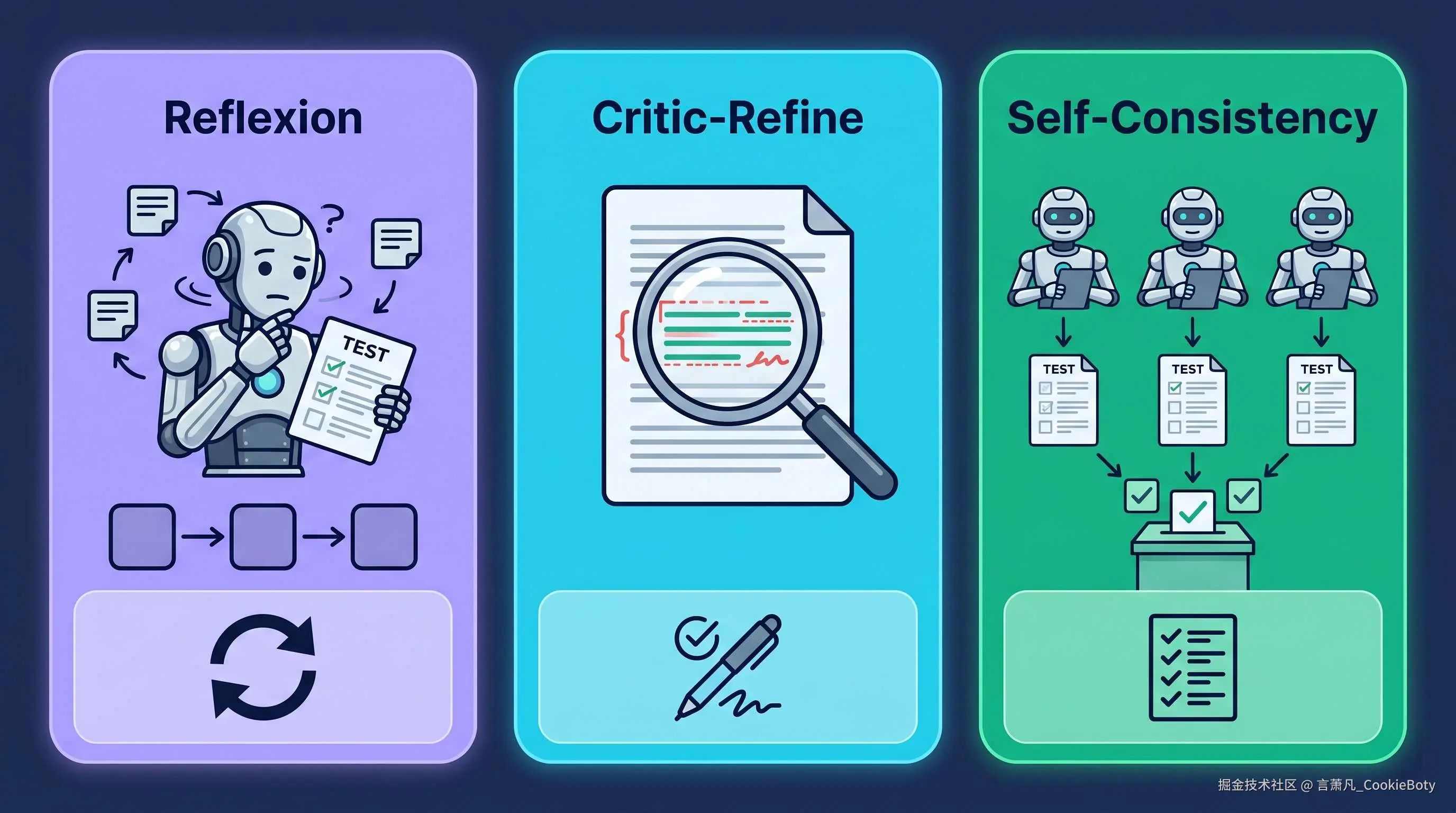 | 🔍 优化层 Optimization | 结果够不够好,要不要修? | Reflexion / Critic-Refine / Self-Consistency | 复核医生 |