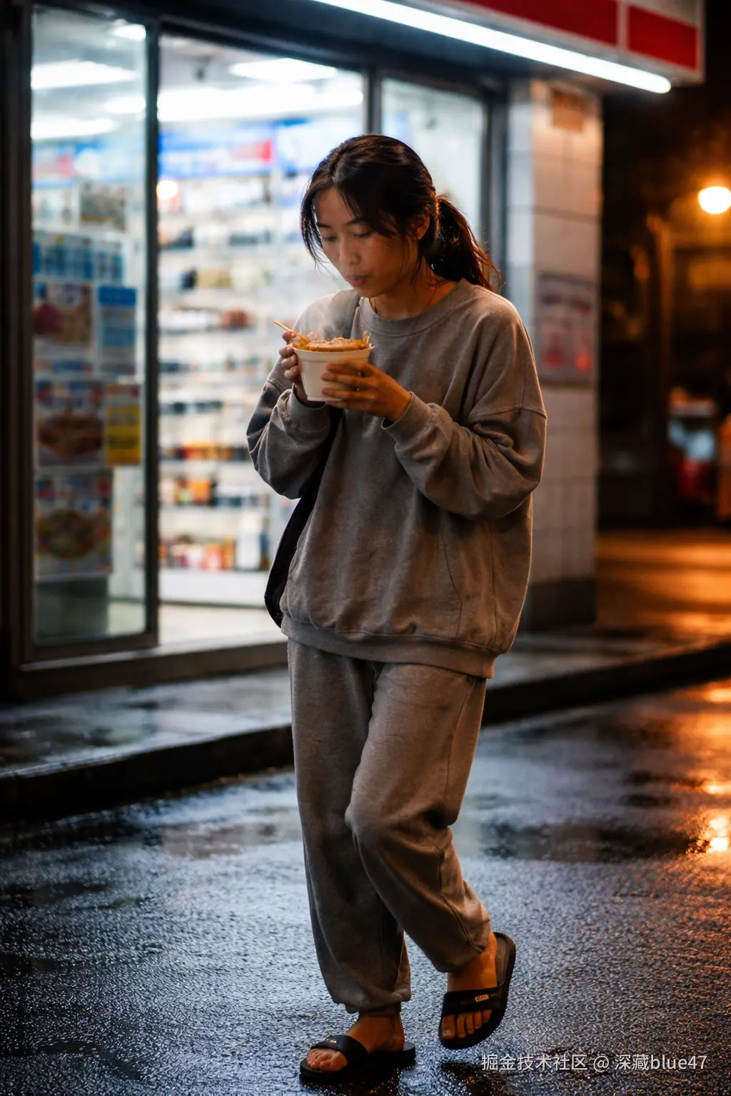 AI 生成人像早就不是难事,难的是生成不带“AI 塑料味”的普通人。GPT Image 2 在处理复杂混合光源(如商场冷暖光交替)以及人物的自然微瑕(如出油感、乱发、不看镜头的抓拍神态)上,达到了极高的纪实摄影级水准。