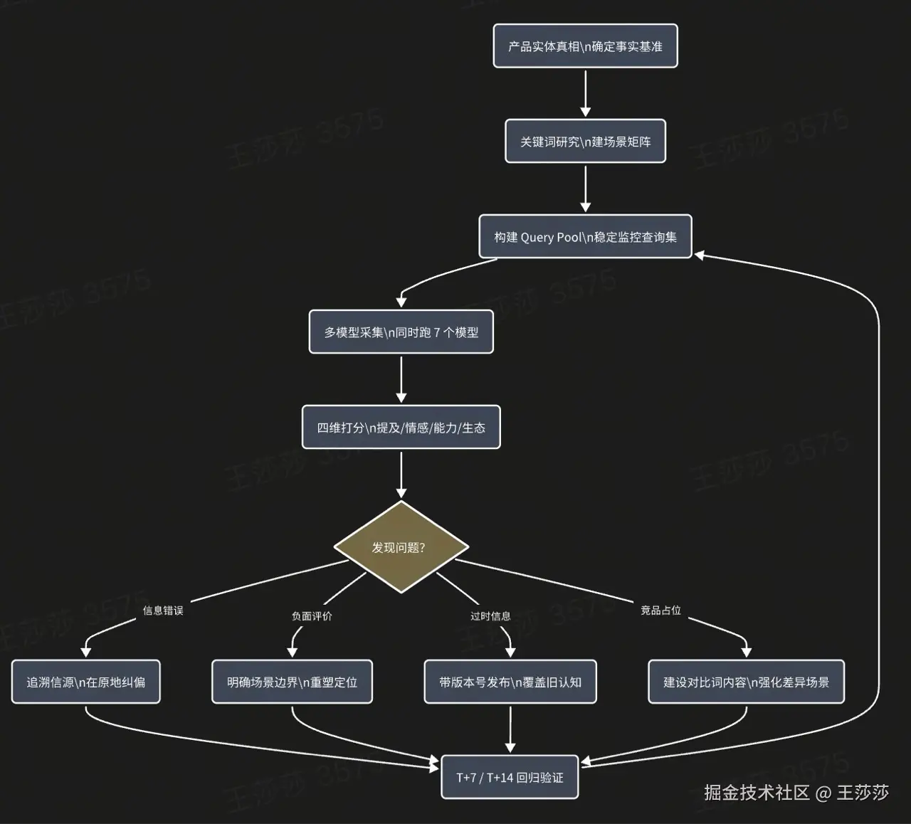 2. 开发者工具专项:现有工具大多面向品牌营销团队,没有专门针对 API/SDK/开源项目的 Query Pool 设计。开发者工具的使用场景、评价维度和修复路径,和 B2C 品牌完全不同。