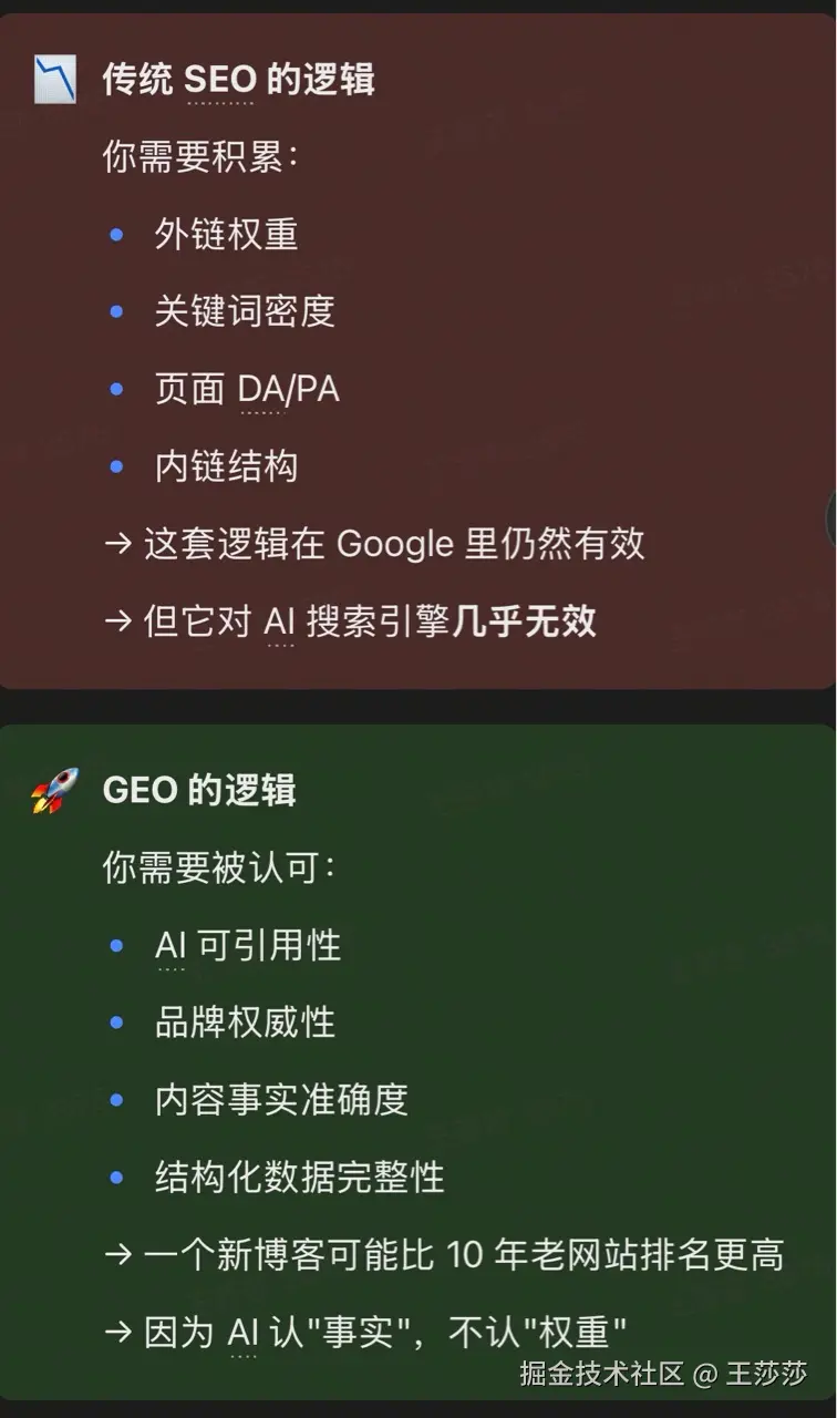 三、SEO 和 GEO:两套完全不同的游戏规则