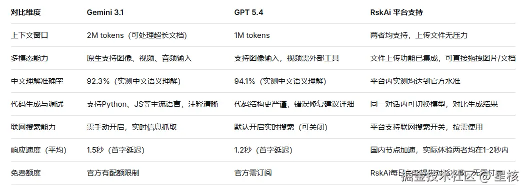 Gemini3.1 vs GPT5.4:核心参数对比