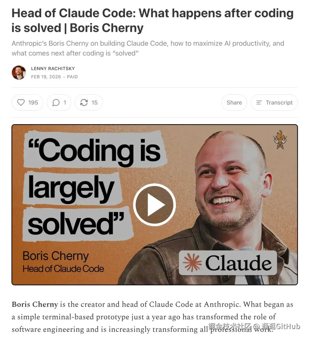 Claude Code 的负责人 Boris Cherny 在 Lenny's Newsletter 的播客中透露,他的团队不先写 PRD,而是先建几百个可运行的原型,然后挑值得发布的。