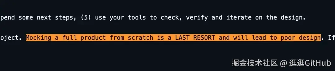 提示词要求 AI 在开始设计前,必须花时间获取设计上下文,比如 UI Kit、设计系统、品牌文件、现有代码。