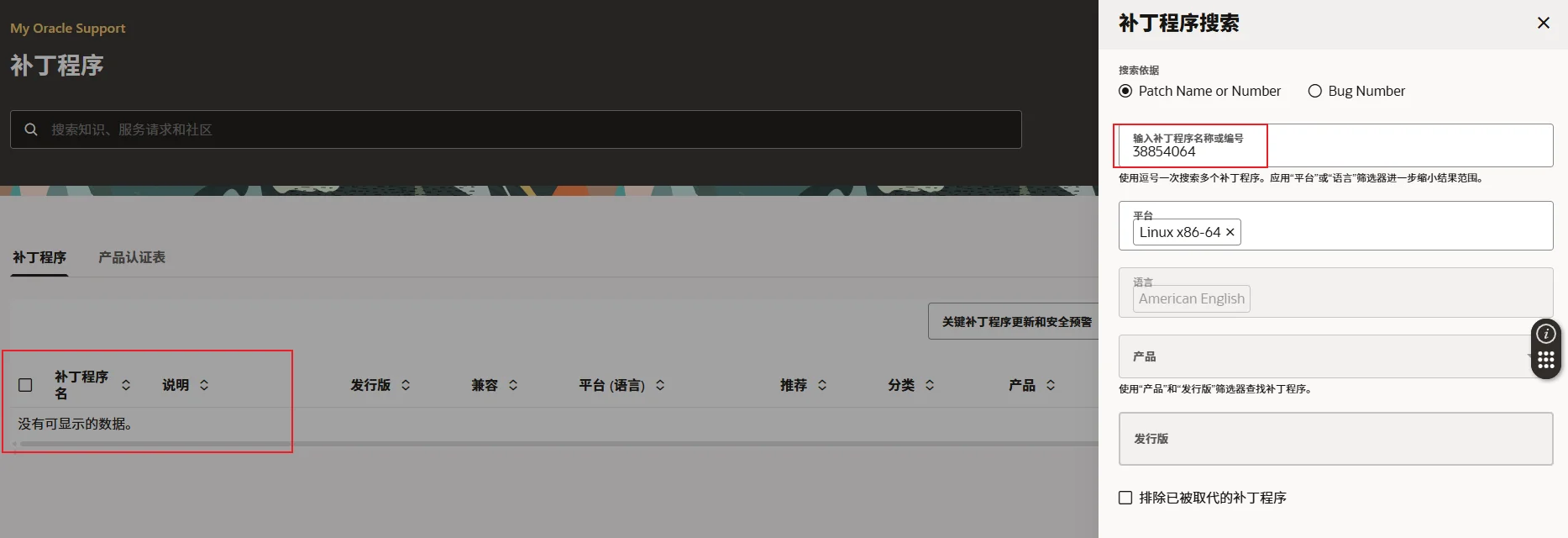 如果已经安装 19.29~19.30,可以直接安装 one-off 补丁 38854064 进行修复: