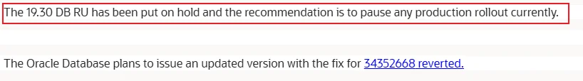 当然了,官方也给出了一些建议以及解决方案:Fix 34352668 in 19.29 and 19.30 DBRU May Cause Corruption in Primary Database and Redo Corruption Impacting Standby Recovery [KB867473]