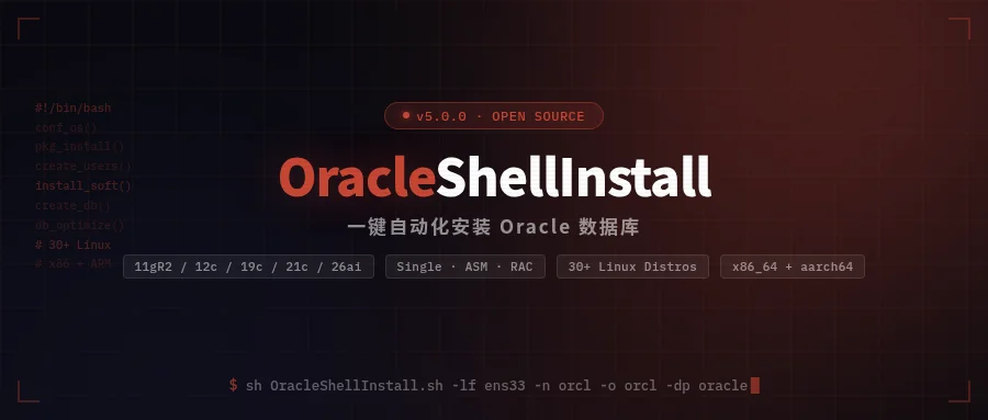 OracleShellInstall(www.oracleshellinstall.com)这个工具的价值就在于:有人帮你把 20+ 种 Linux 发行版 × 5 个 Oracle 大版本 × 3 种部署模式的所有组合都测试过了,封装成了一个 Shell 脚本。