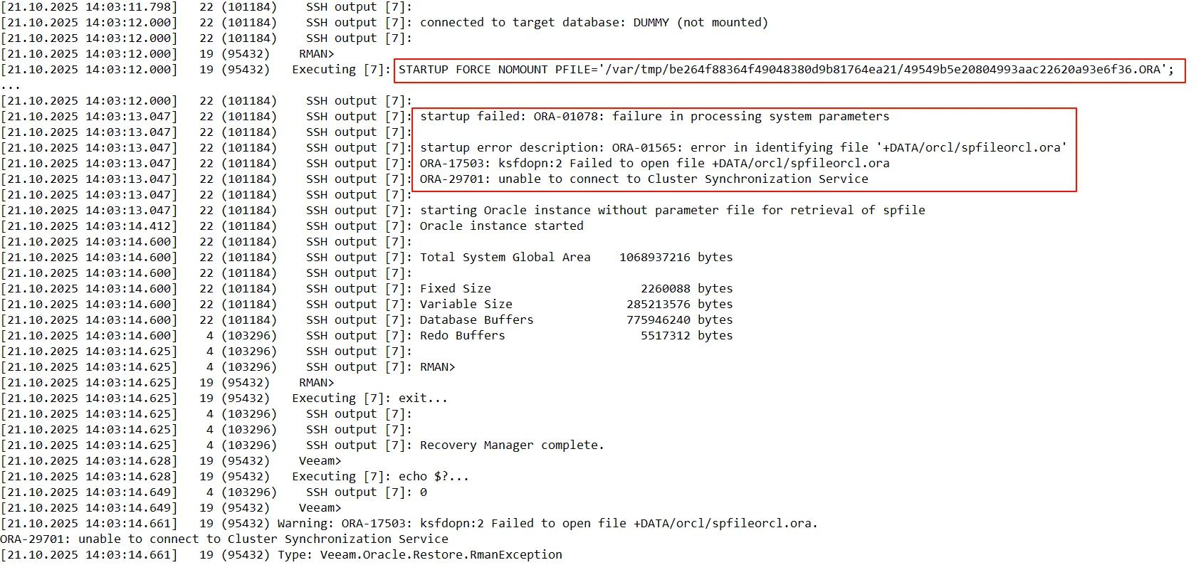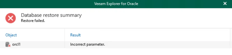 今天做恢复演练,从 Veeam 备份恢复一套 RAC 数据库到单实例环境,本想着做过好多次了,应该是轻车熟路,没想到报错了: