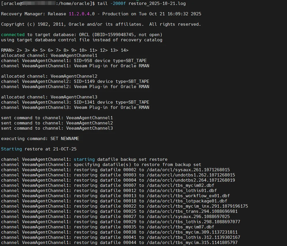 [oracle@test:/home/oracle]$ sh /home/oracle/veeam_restore.sh &