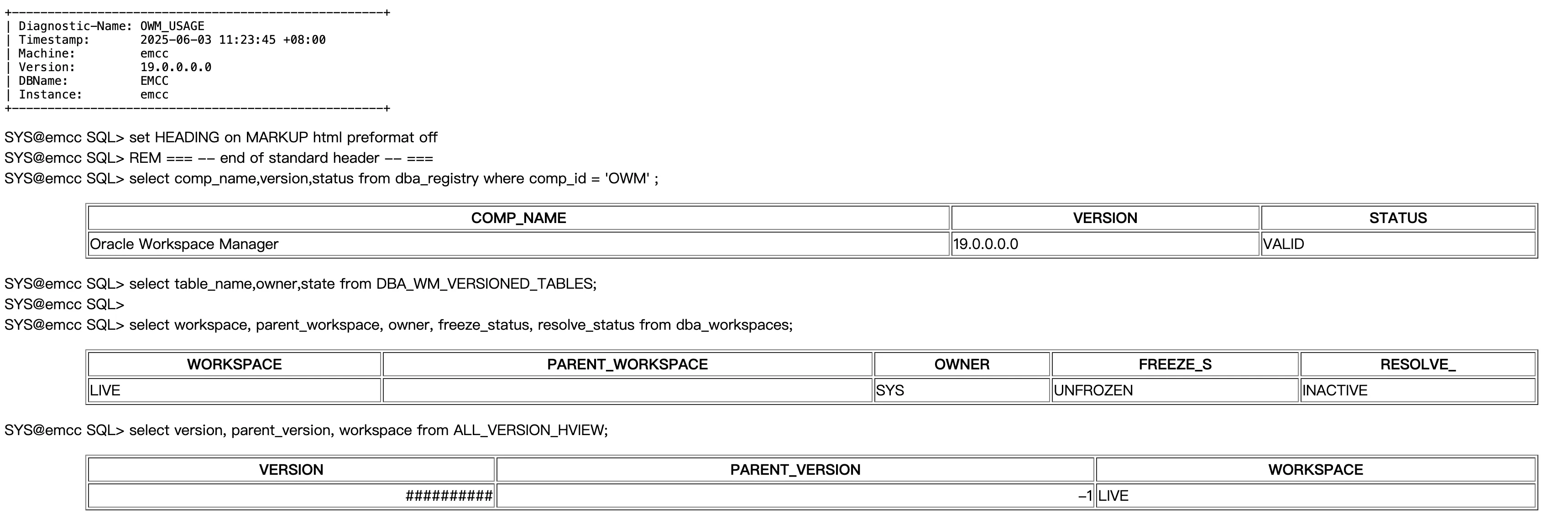 OWM VALID 19.0.0.0.0 Oracle Workspace Manager