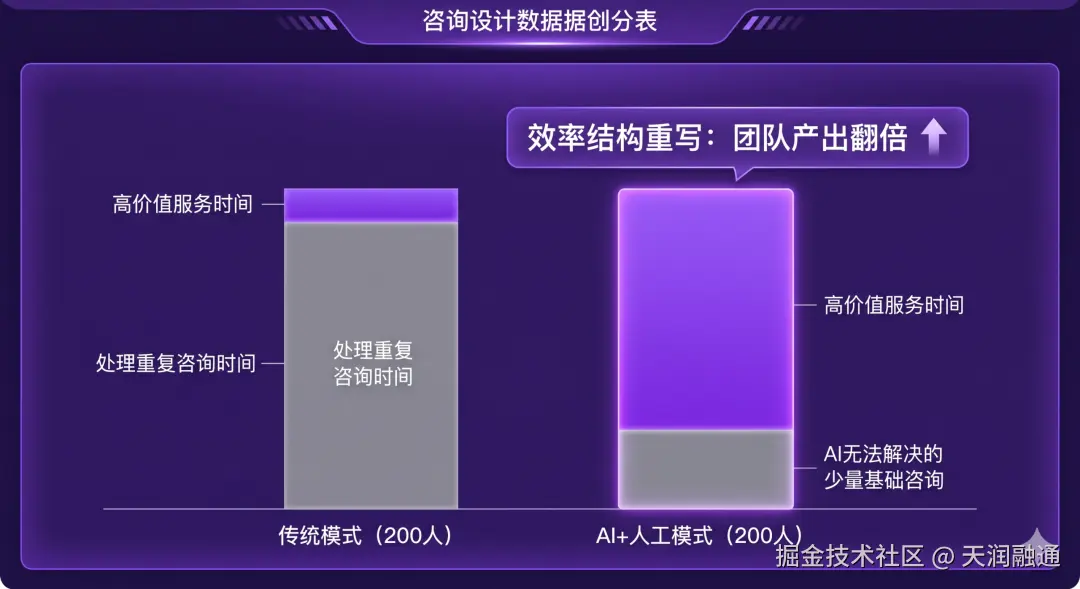因此,我们服务的这家企业在内部提出了一个非常明确的目标:让AI承接低价值咨询,把人工释放出来。