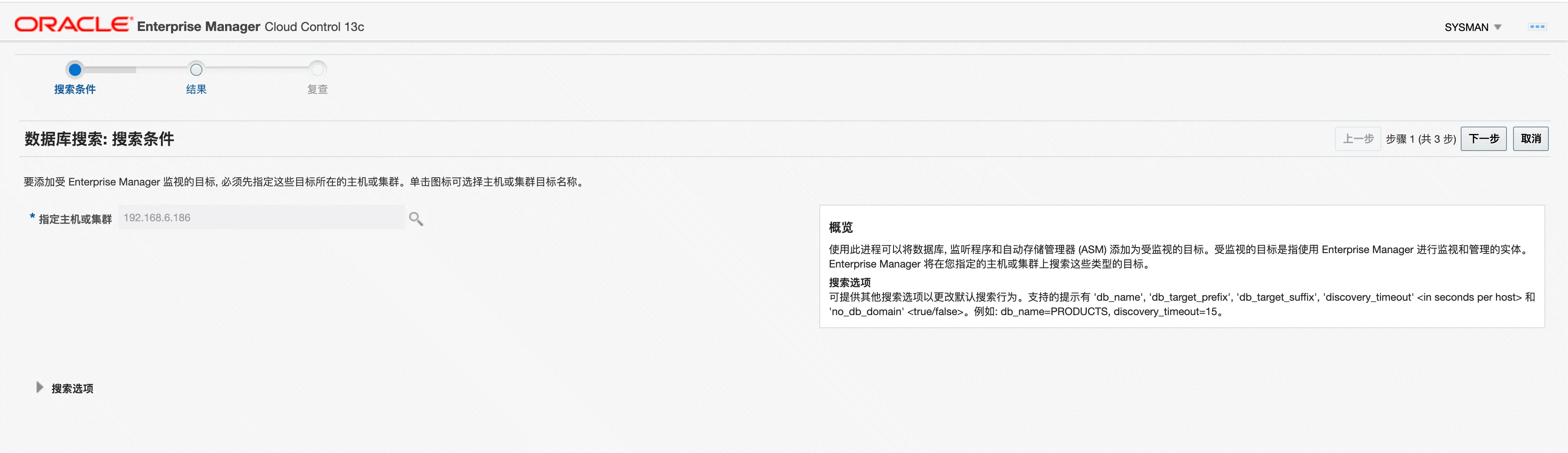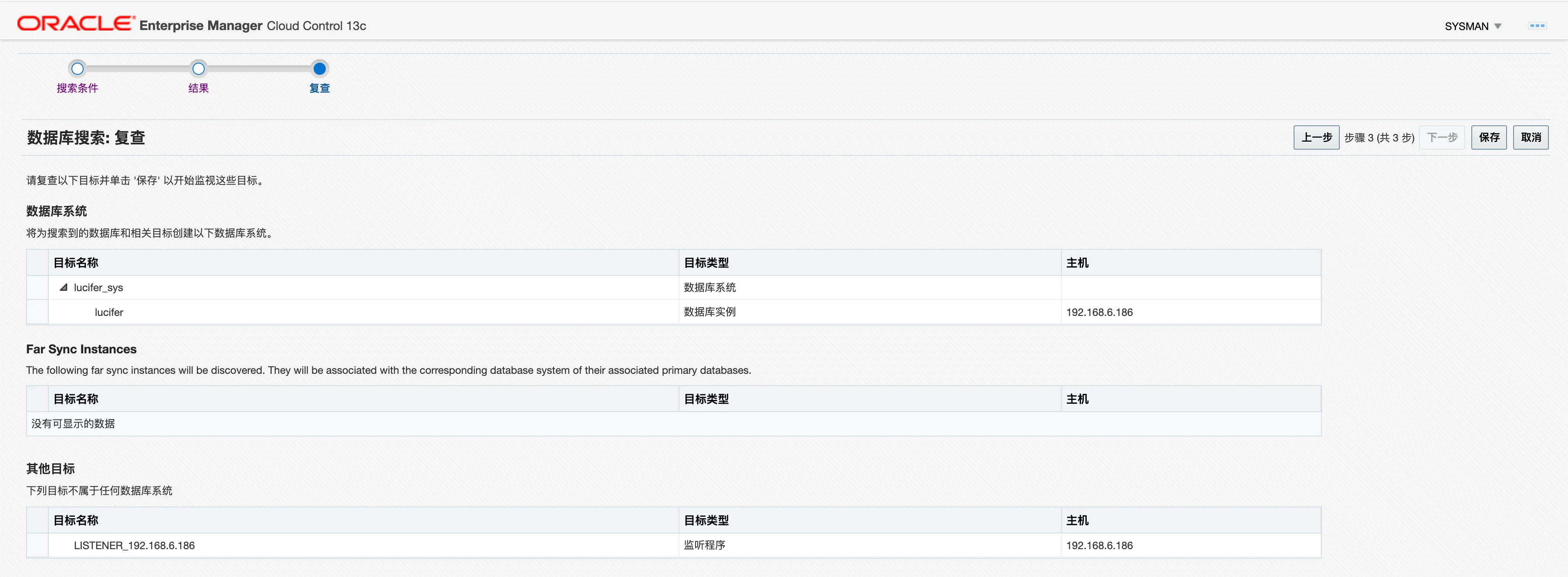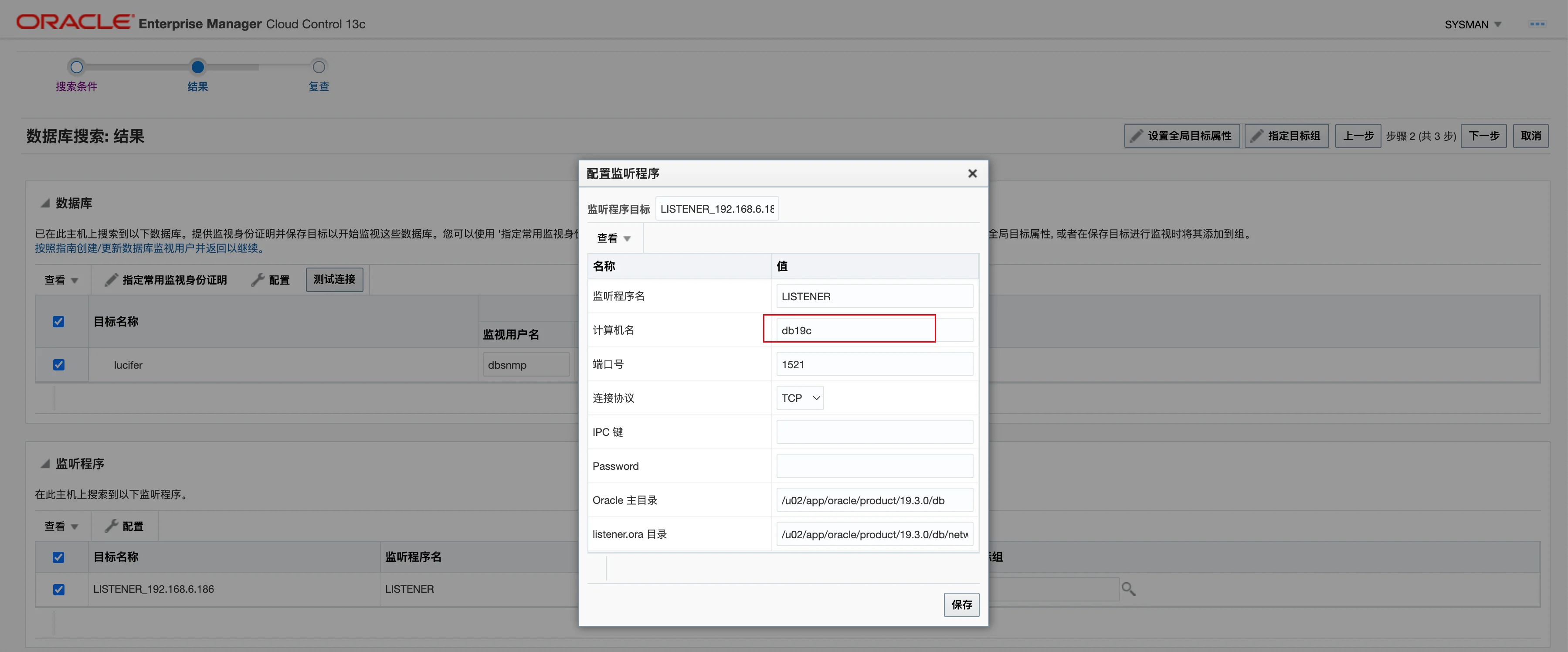 这里配置之前,需要解锁 dbsnmp 用户并且设置密码,否则会报错:
