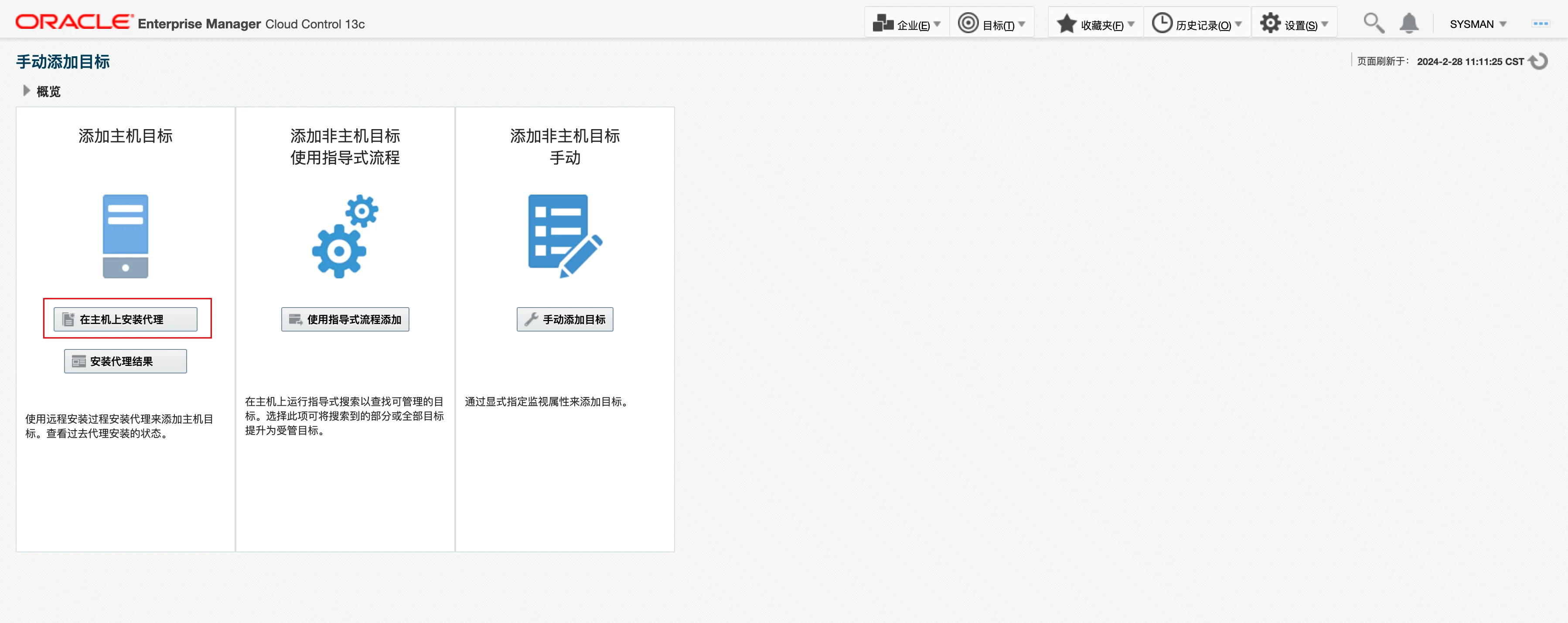 在部署好 EMCC 服务端之后,如果需要监控某一台主机或者数据库,就需要在对应的主机上部署上代理(AGENT)。