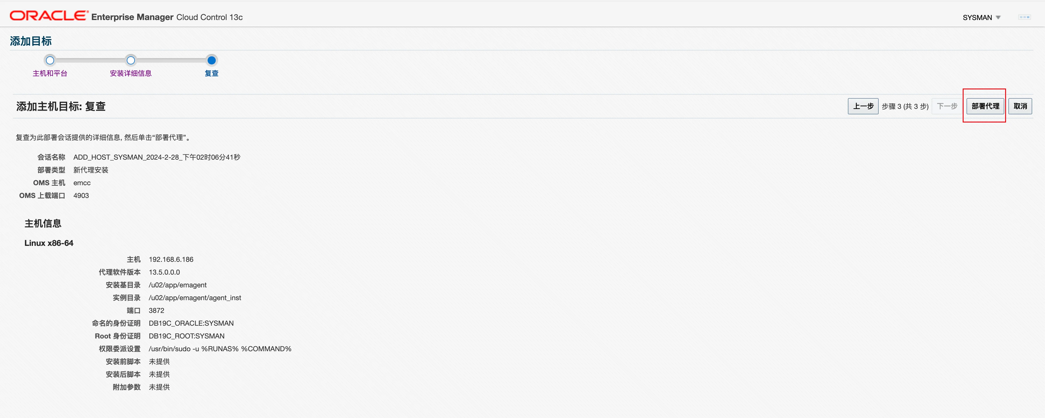 点击下一步,然后开始部署代理: