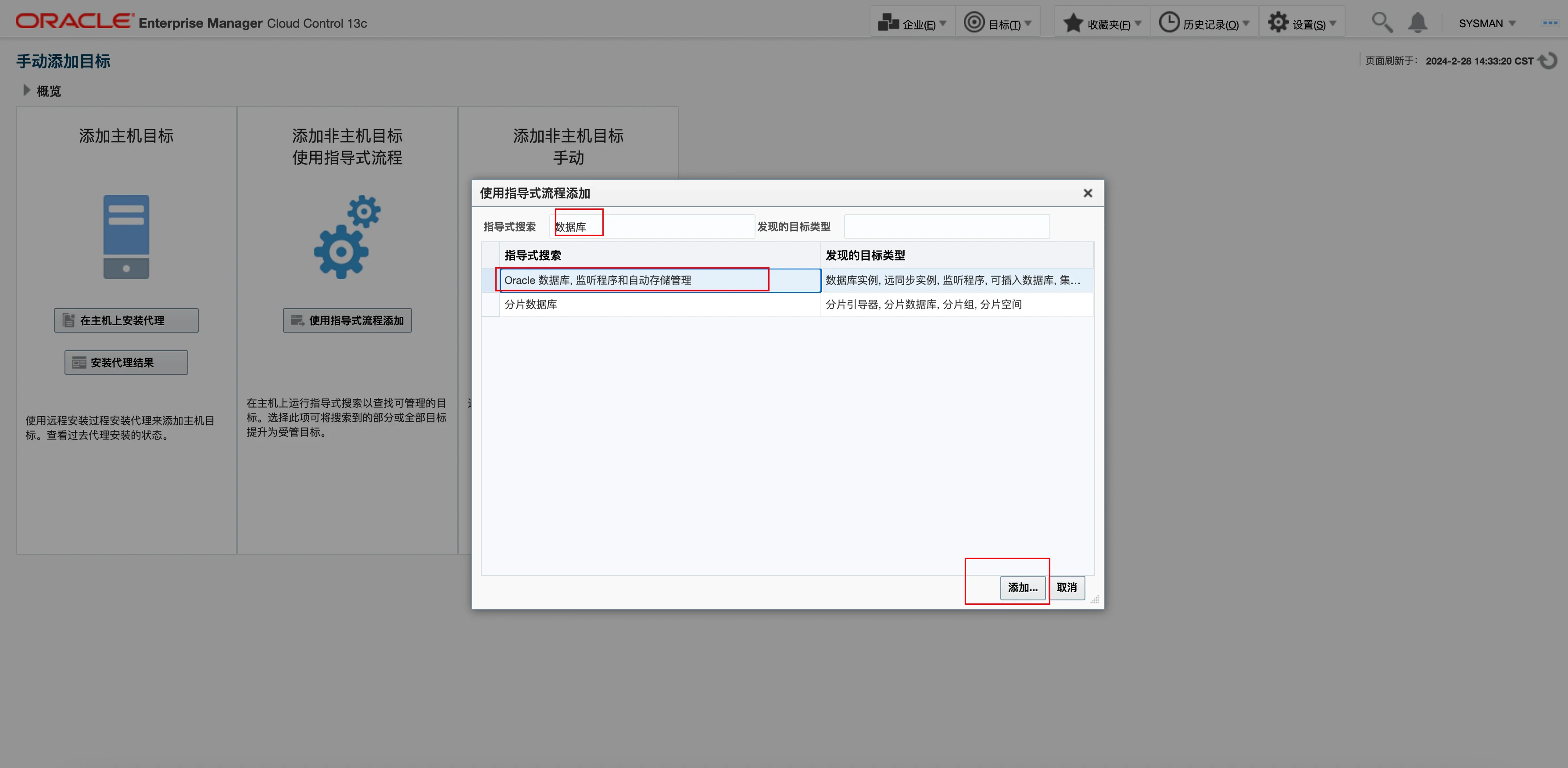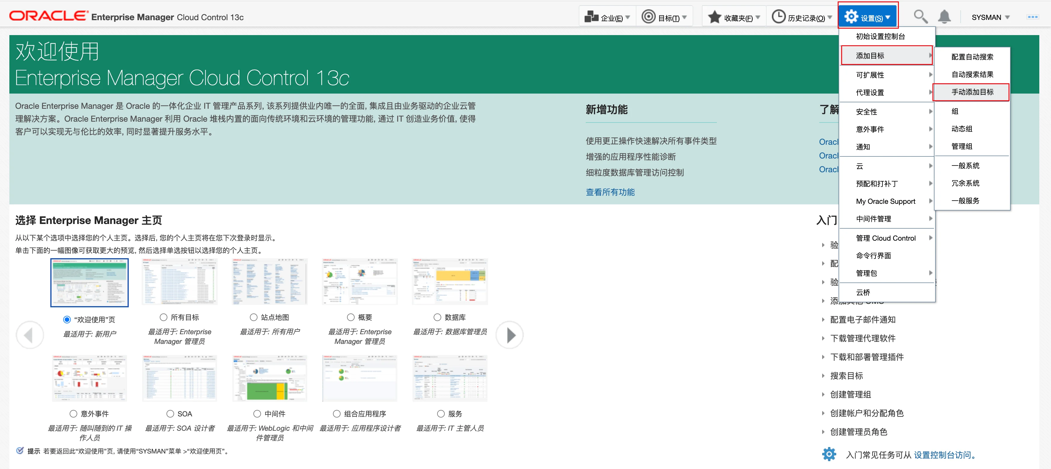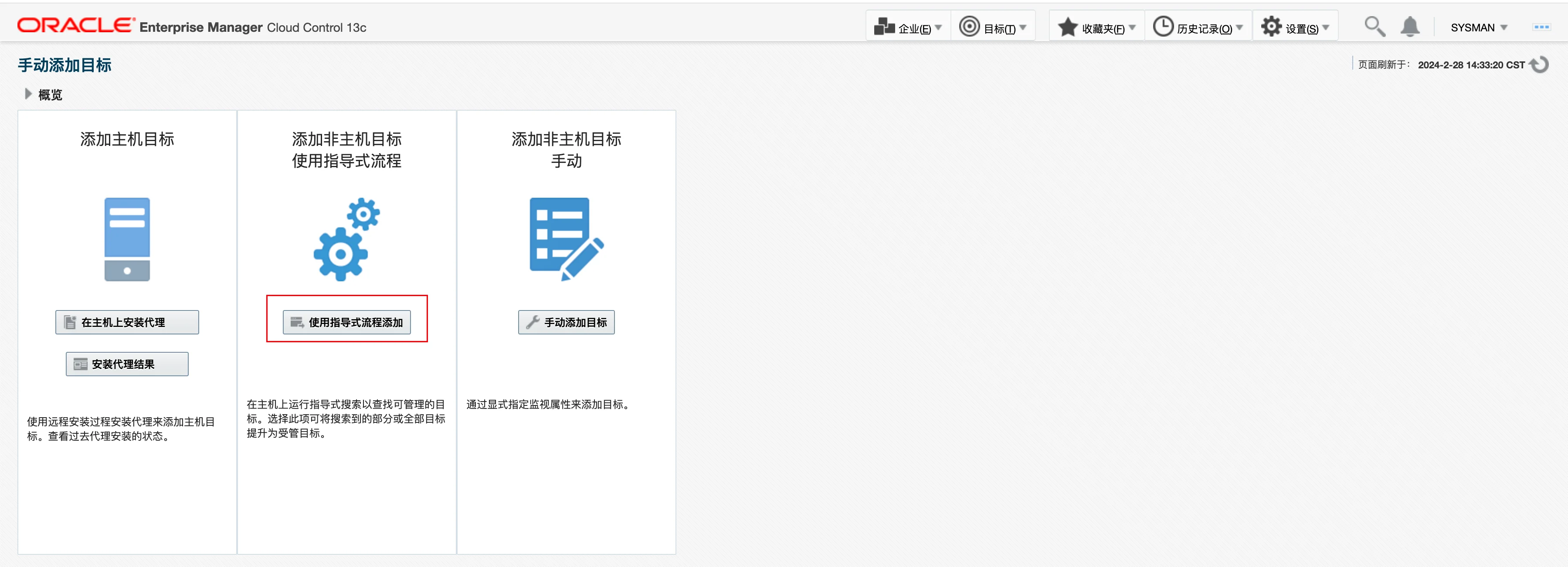 在 EMCC 网页端选择 手动添加目标: