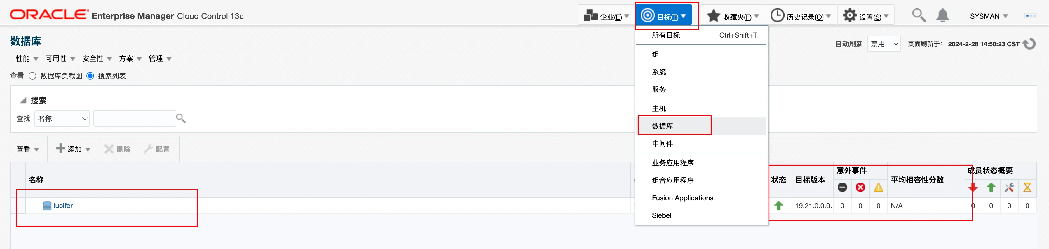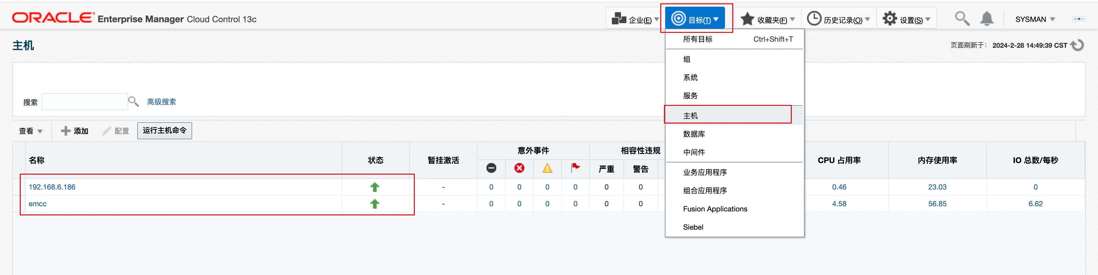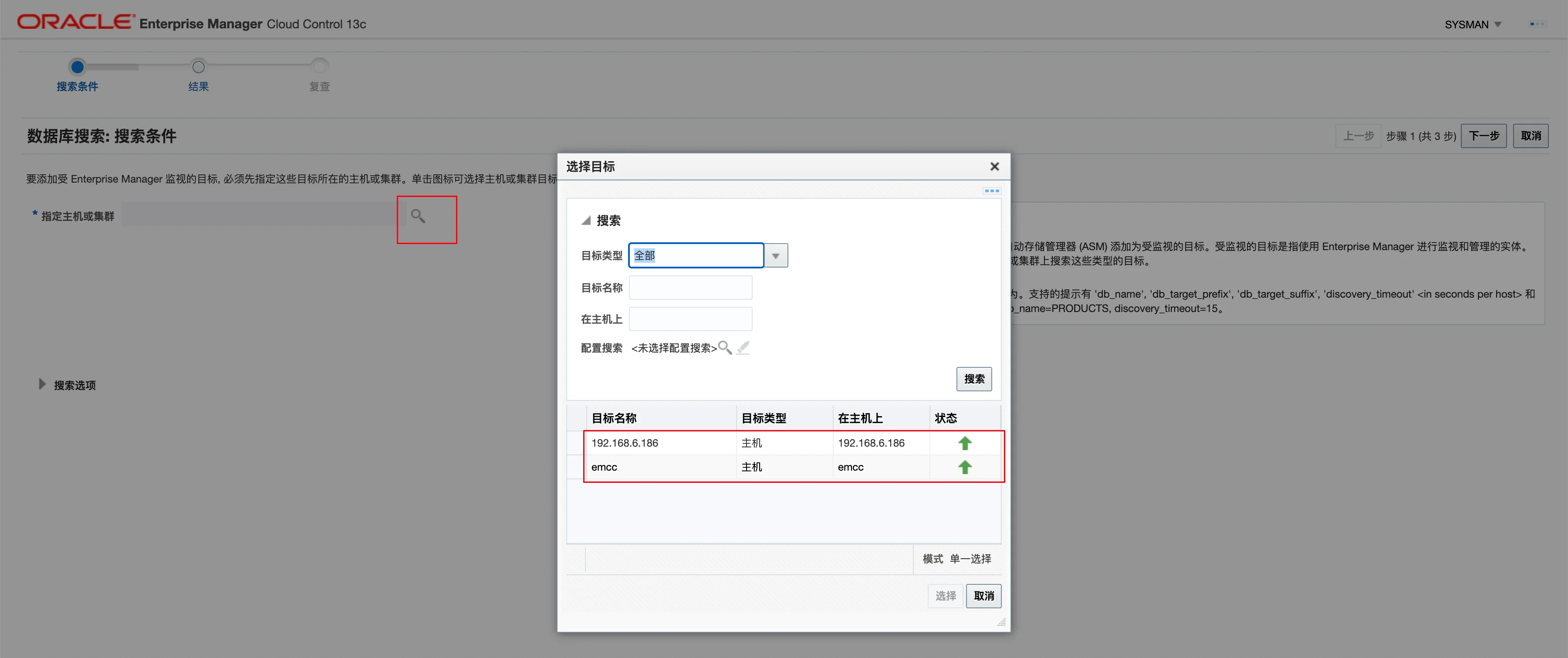 选择已添加主机的数据库: