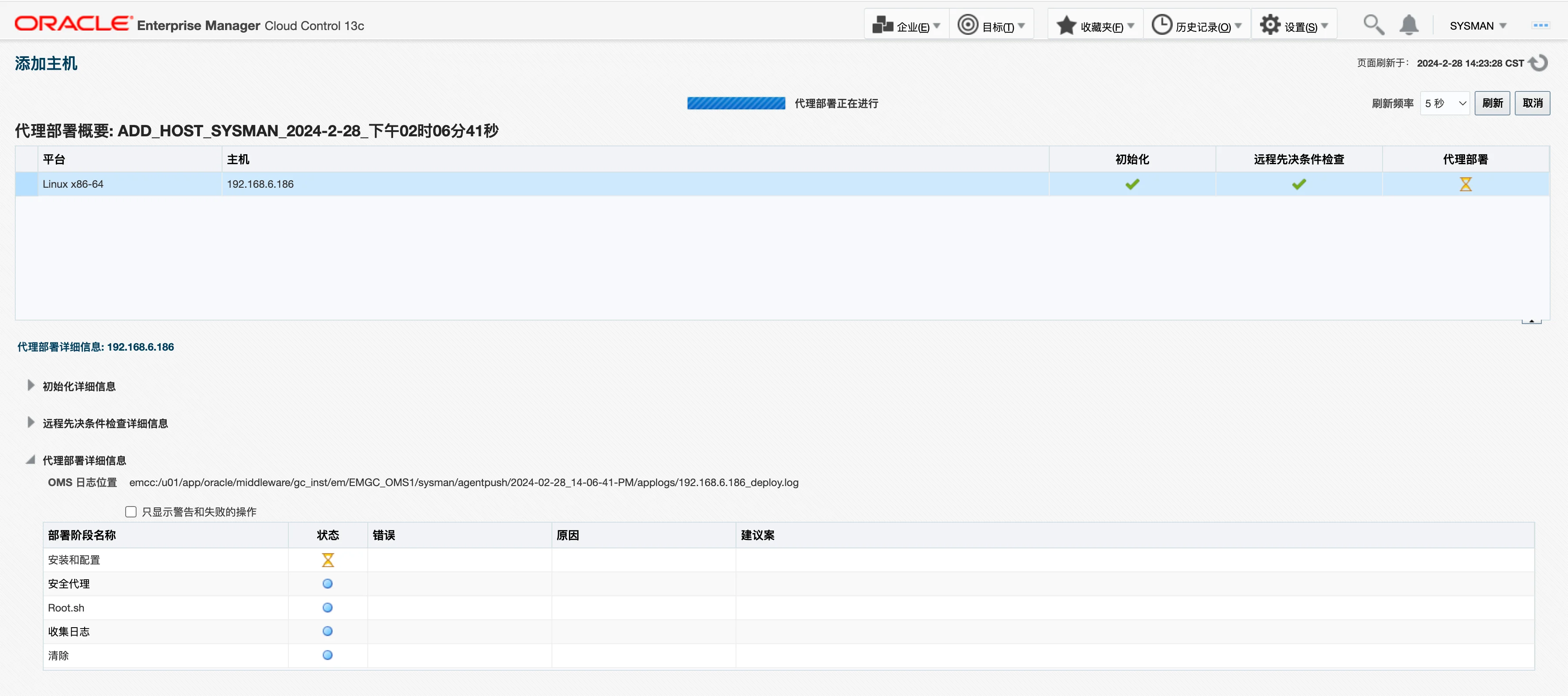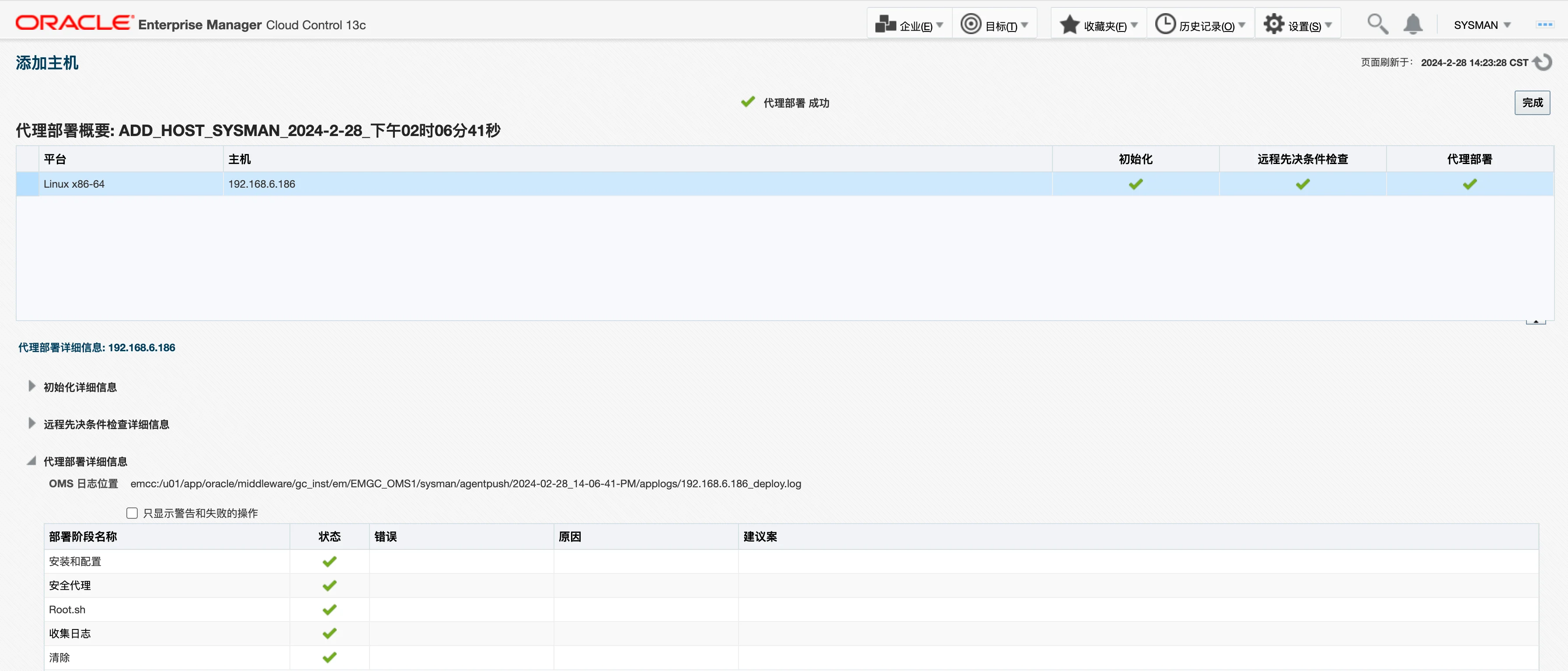 首先,需要在被监控主机上增加 EMCC 服务端的主机解析以及创建 AGENT 安装的目录(前提是 EMCC 服务端和被监控段的网络保持畅通):