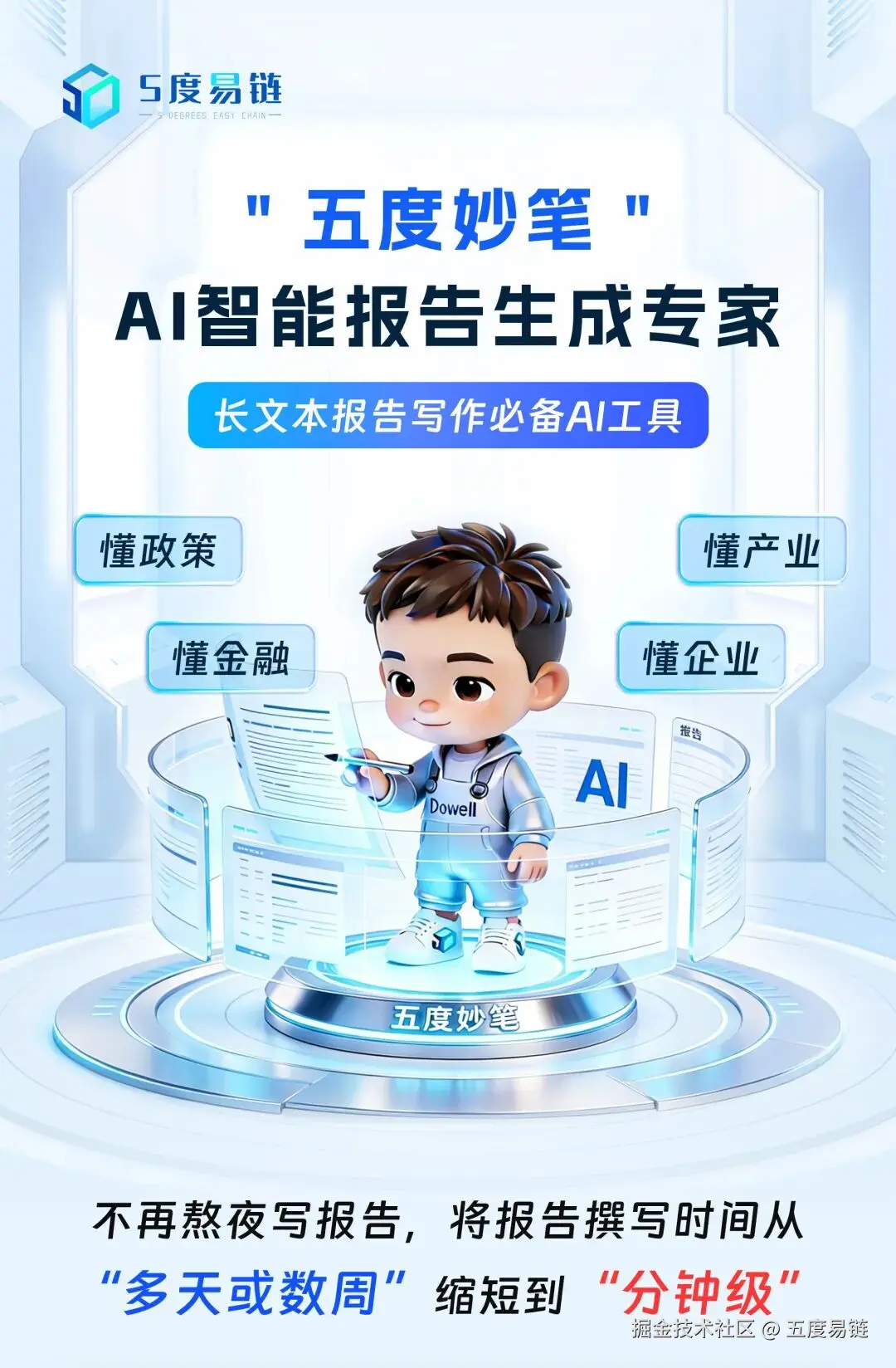 4月20日,笃威尔数字技术旗下「五度妙笔」AI 智能报告生成专家内测圆满收官,商务版正式上线!