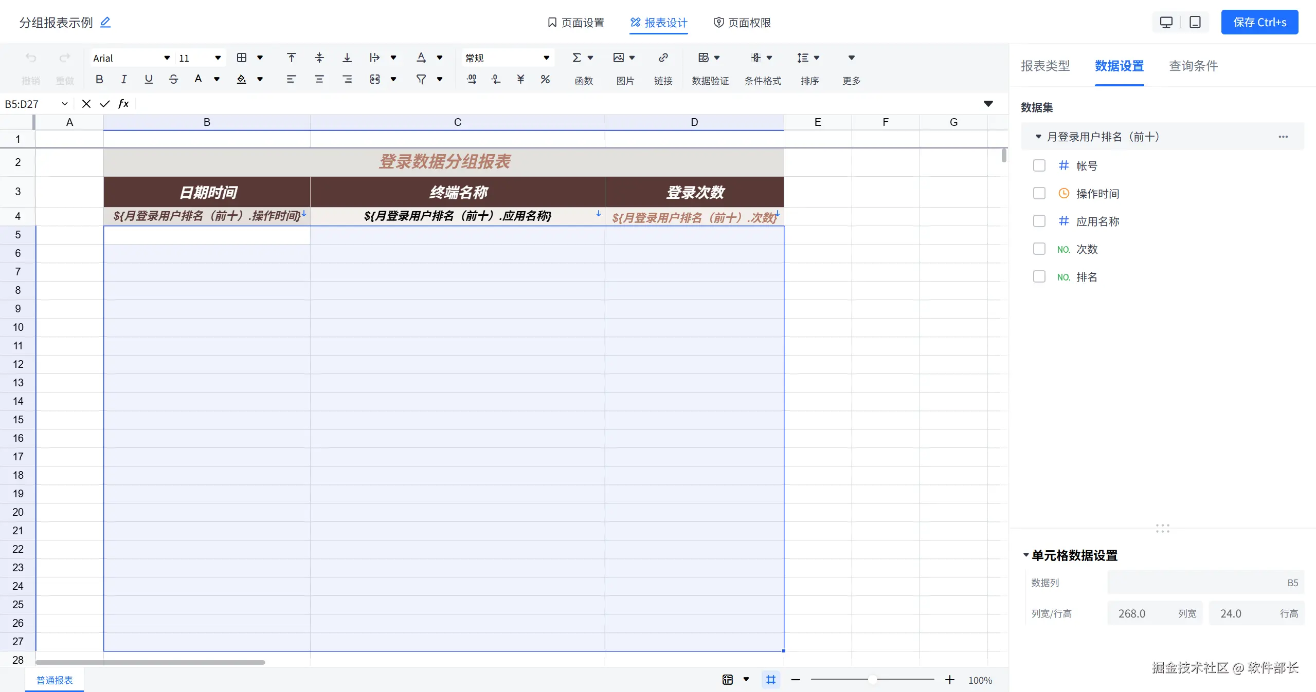 打破图表与报表的界限,是提升报表实用性的关键。可以将复杂图表直接嵌入报表中,如:在销售明细报表上方,直接放置销售额趋势折线图和销售占比饼图。决策者在查看明细数据的同时,可以第一时间掌握宏观趋势,实现“微观明细+宏观分析”的双重呈现,让报表真正成为决策辅助工具。