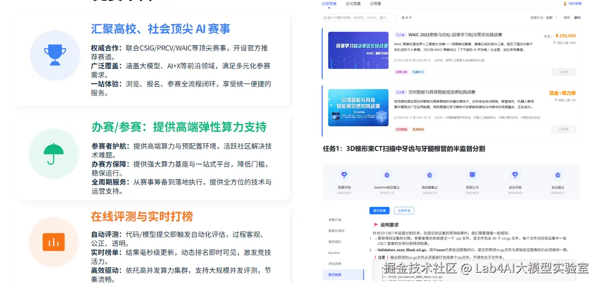 除了核心的算力与科研工具支持,Lab4AI社区还为参会者(尤其是青年学者与学生)准备了专属成长福利,打造集学、练、赛于一体的成长平台。