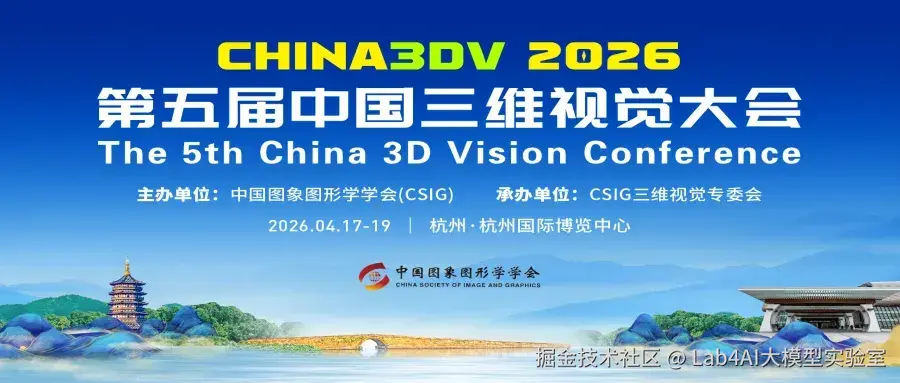 2026年4月17—19日,第五届中国三维视觉大会(China3DV 2026) 将在杭州国际博览中心隆重召开。作为国内三维视觉领域最高规格的学术研讨盛会,本次大会由中国图象图形学学会(CSIG)主办、CSIG三维视觉专委会承办,会议聚焦三维重建、三维生成、时空重建与世界模型、具身智能、人形机器人等前沿方向,打造集主旨报告、专题论坛、Poster展示、Live Demo、学者面对面于一体的学术盛宴。