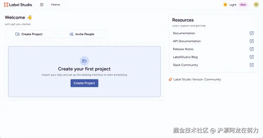 启动成功后,服务默认监听在 http://localhost:8080。首次访问时,系统会要求注册一个管理员账号,用于后续的项目创建和管理。这个账号将拥有该Label Studio实例的全部管理权限。