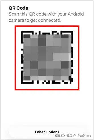你的 iPhone 上会显示一个二维码,使用你的安卓设备的摄像头扫描该二维码。