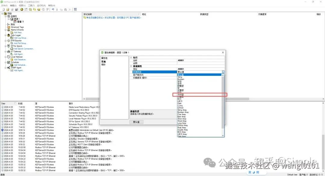 关键点:数据类型 (DataType)。选择与实际数据匹配的类型,例如,读取一个32位浮点数时,数据类型应选择 Float。