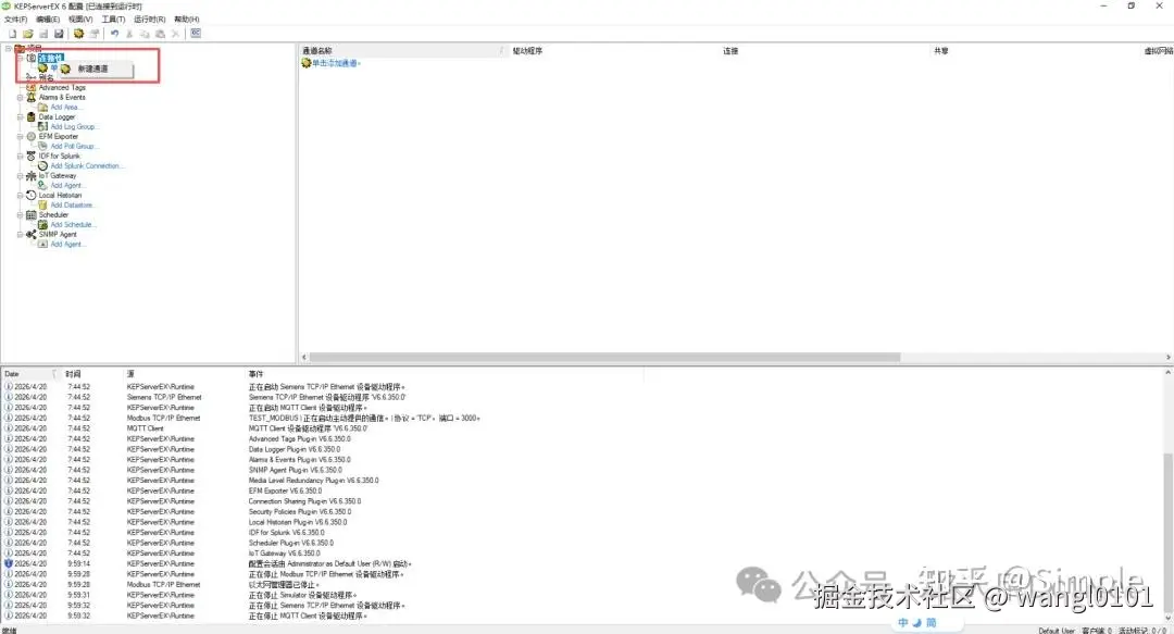 在 KEPServerEX 中,右键点击“连接性”,选择“新建通道”。