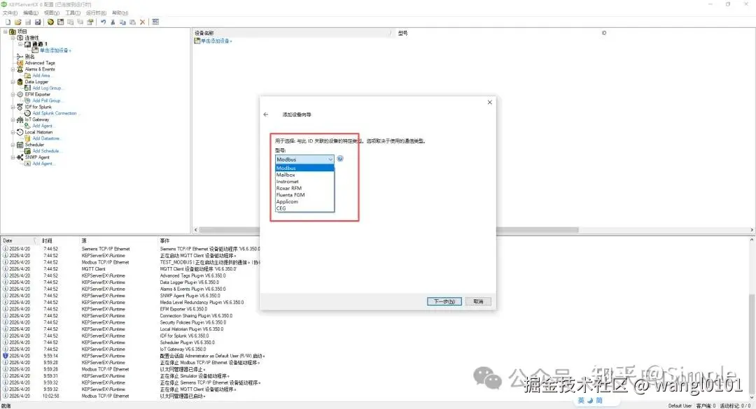 设备型号:选择 Modbus(这是通用选项,适用于绝大多数Modbus设备)。