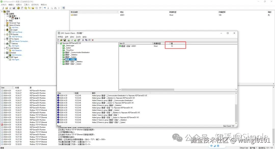 Ctrl+Q)打开客户端。在树形结构中展开到你创建的Tag,如果其“品质”列显示为“良好”且数值在不断刷新,说明通讯成功。 -