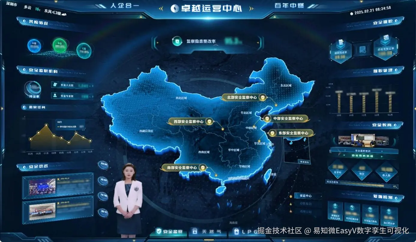 以中国燃气为例,其管网系统分布广泛且复杂,管理过程中经常出现供需不平衡、设备运行状态不明、泄漏定位迟缓等问题。易知微通过建设一体化管控平台,利用数字孪生技术实时监控管网压力、流量等核心数据,并结合动态用气量趋势进行智能供需平衡分析,同时通过AI数字人辅助完成跨部门业务管理。这种从感知到决策的闭环管理有效规避了资源浪费及能源紧张,显著提升了管理效率。