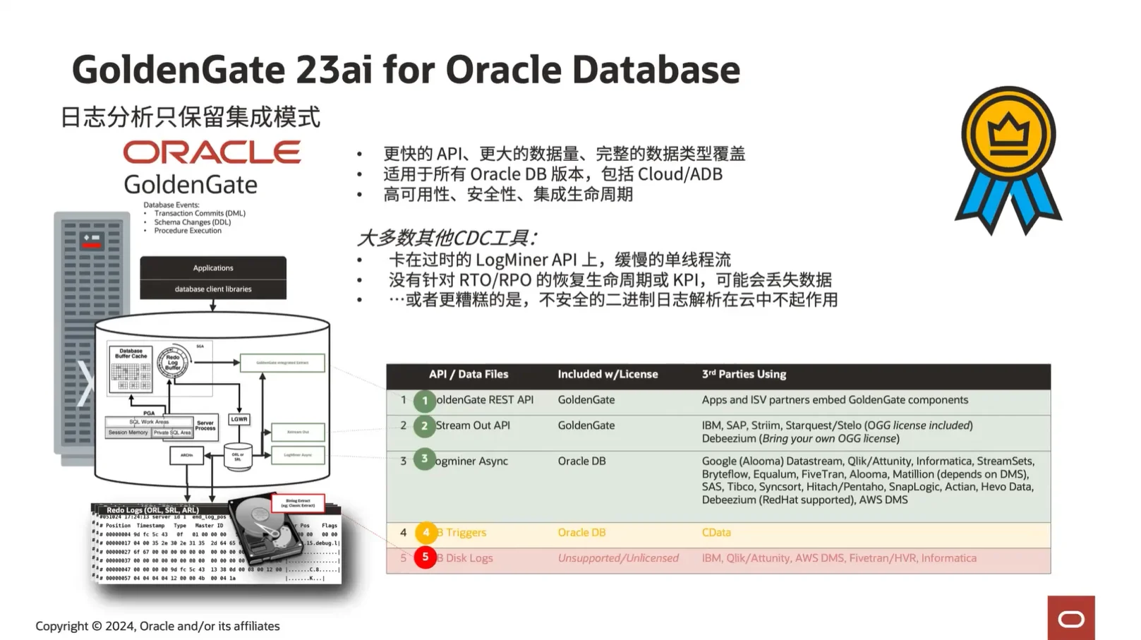 - 对 DataGuard (DG) 环境的影响:由于从 DG 备库抽取数据传统上依赖于经典模式,因此 23ai 版本无法直接通过经典模式从 DG 备库同步。不过,Oracle 提供了替代方案来解决此场景下的数据同步需求。