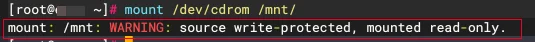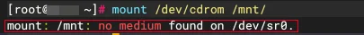 以上两条命令的效果一样,都可以。如果没有在物理层面连接 ISO,主机层面挂载 ISO 时会报错: