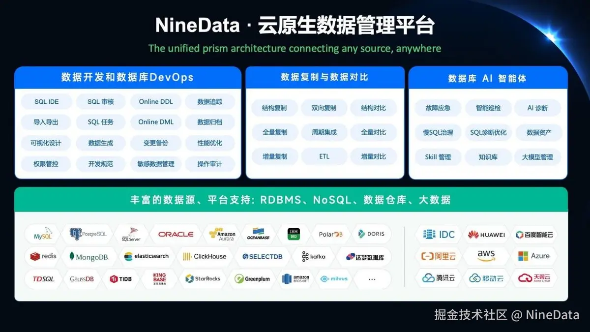 NineData携全新升级的企业级智能数据管理平台与全场景行业解决方案集中亮相。 此次参展,围绕数据复制A2A架构升级、AI原生数据库DevOps、ChatDBA智能运维三大核心能力,针对多云、混合云、多源数据库并存的复杂环境,NineData带来了覆盖数据全生命周期的一体化解决方案。